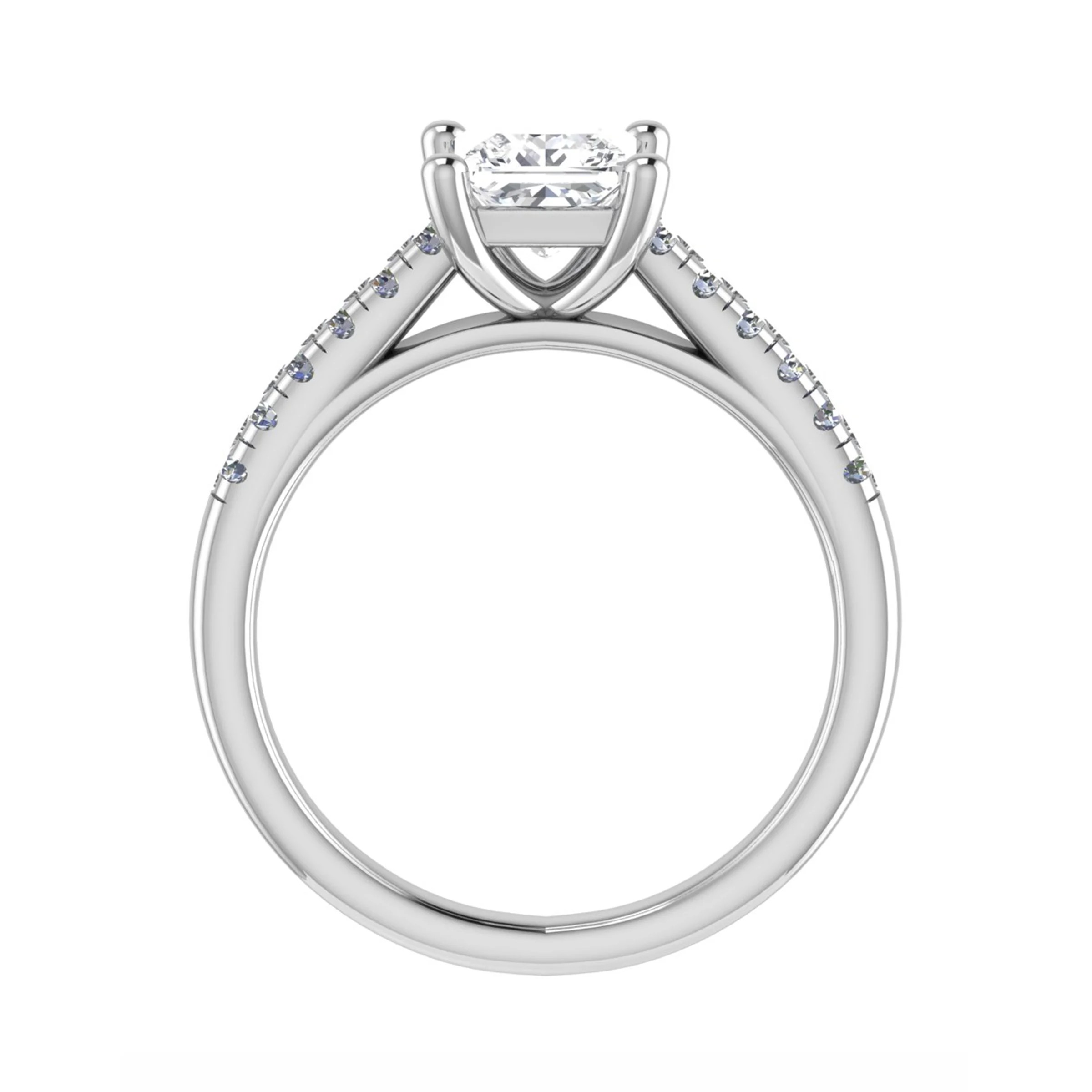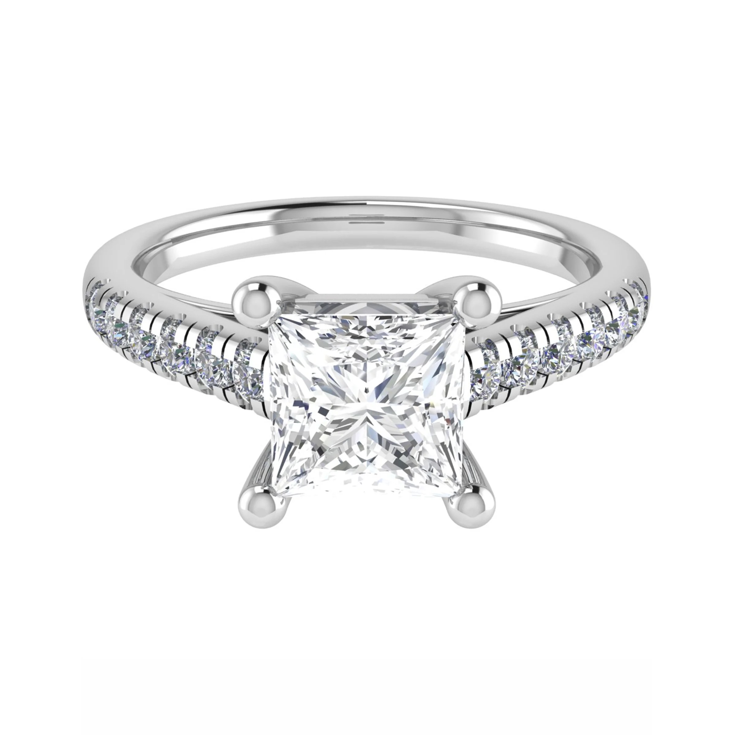 Classical engagement ring with Princess cut diamond and micro pavé on the shoulders