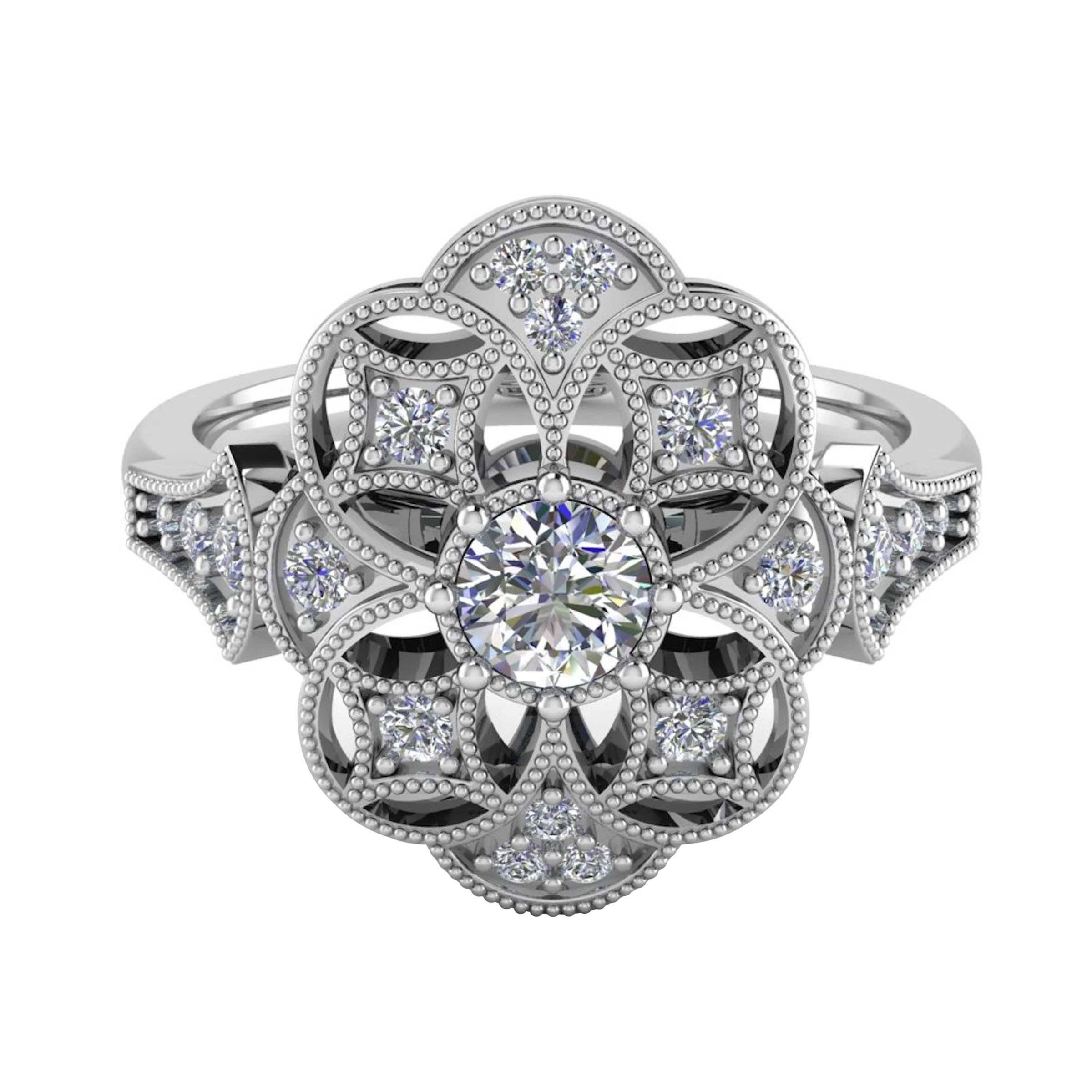 Vintage engagement ring with grain setting details.