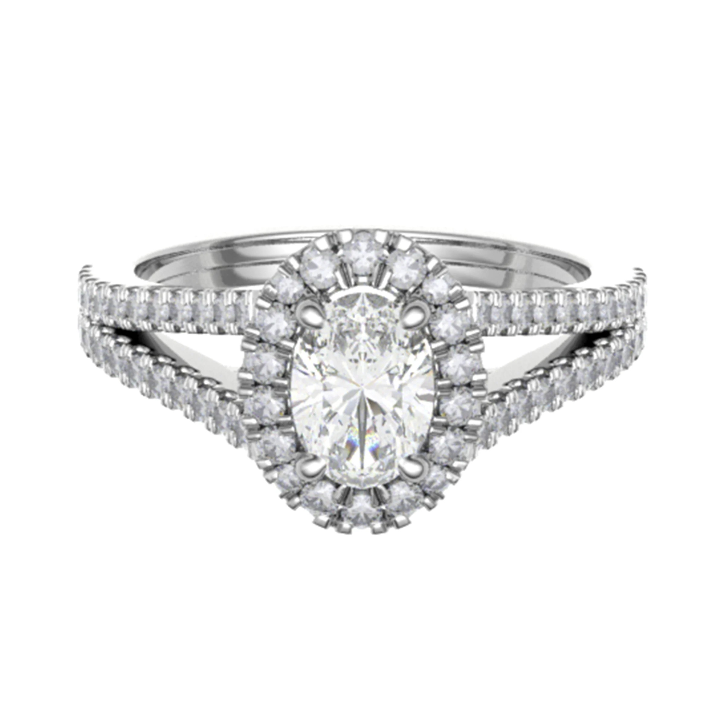 Halo Ring with no gap , split shank set with micropavé diamonds.