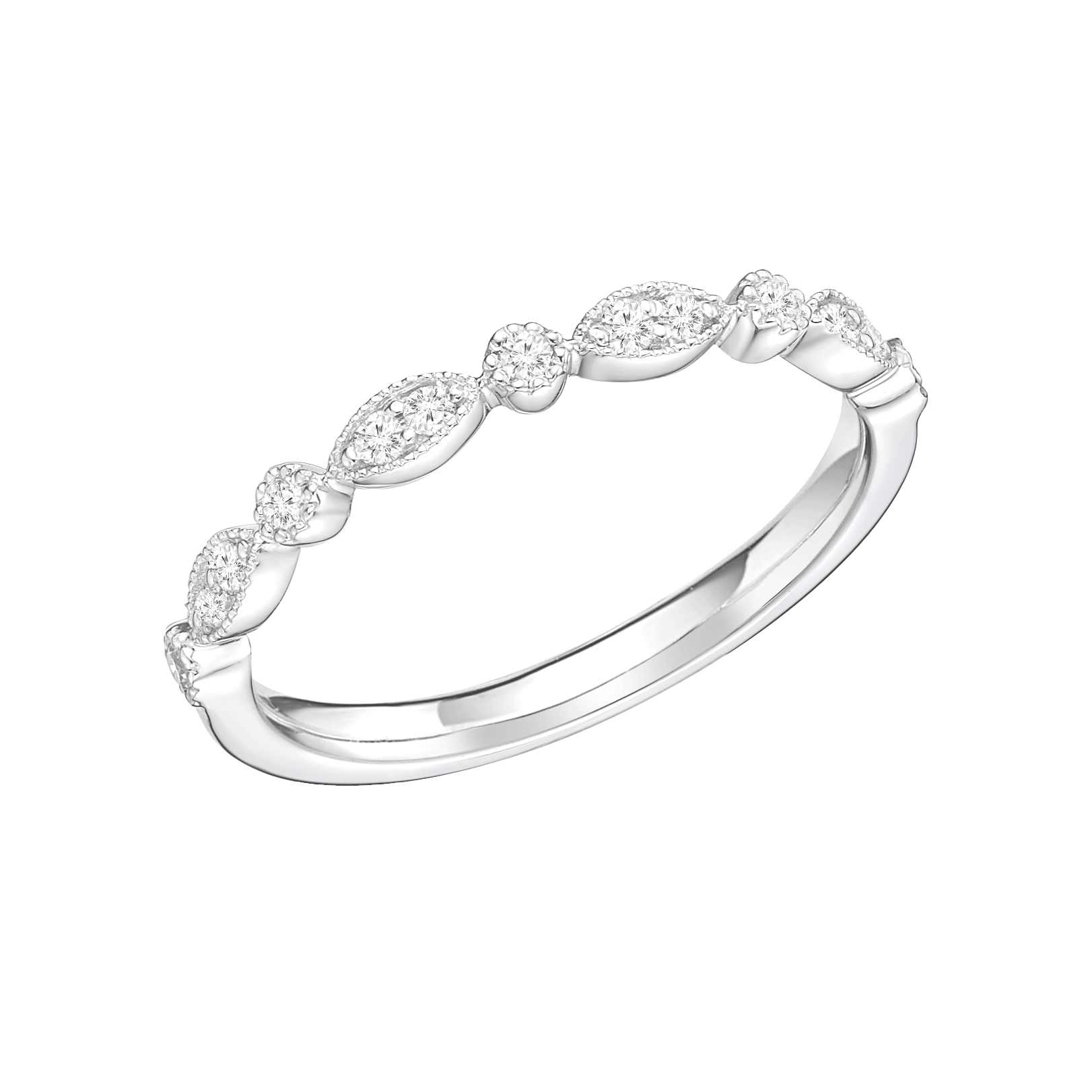 vintage look of 1.8 mm wide . Milgrain set with diamonds E- F color and VS clarity.